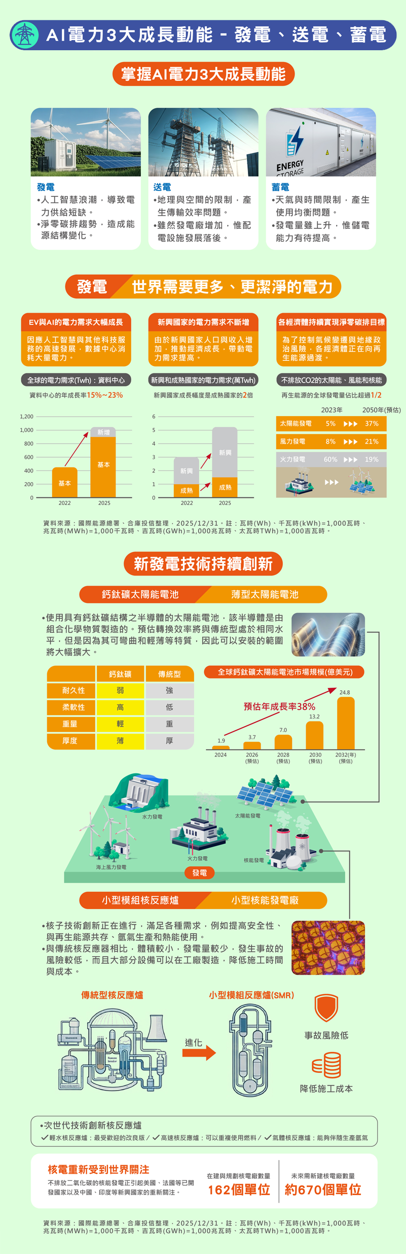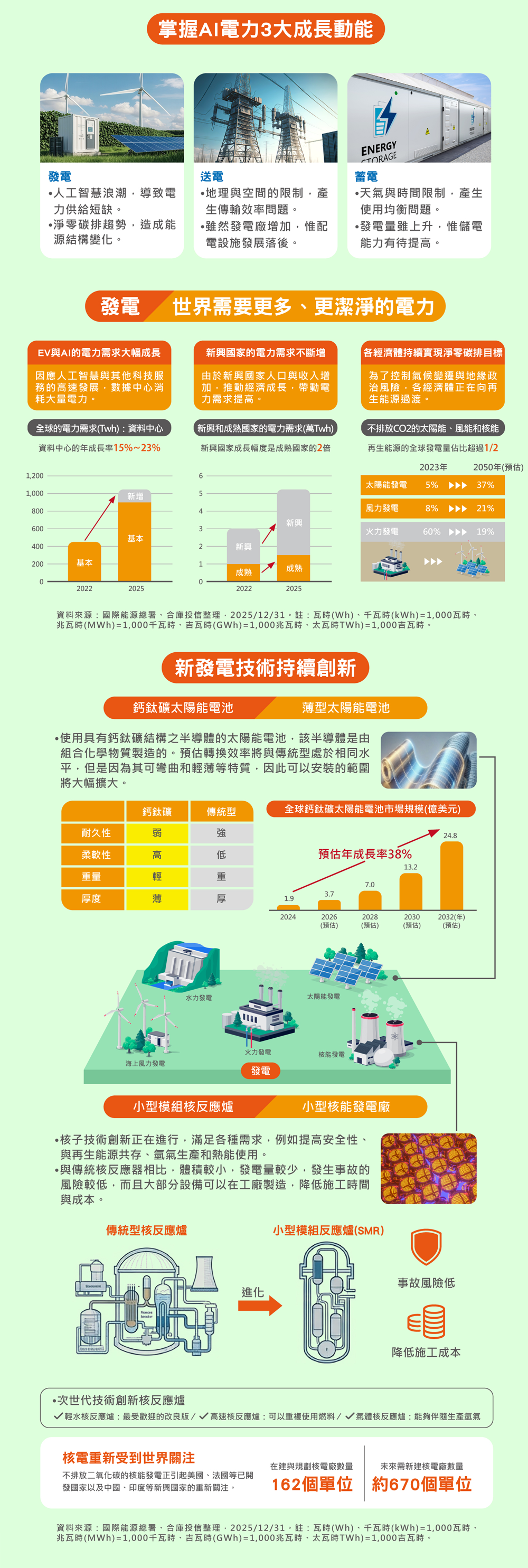 AI電力3大成長動能發電、送電、蓄電
